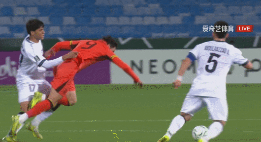 中国U23首发:16-李昊、2-胡荷韬、3-贺一然、4-吾米提江、15-彭啸、17-鲍世蒙、6-徐彬、13-王博豪、20-李镇全、9-拜合拉木、10-王钰栋
