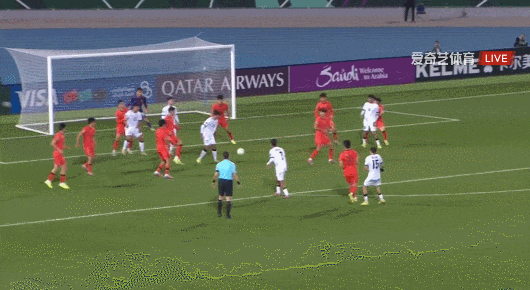 第58分钟,中国队定位球击中后卫出了底线。