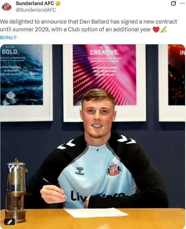 官方:桑德兰宣布和巴拉尔德续约到了2029年,附带俱乐部主导的延长一年条款。