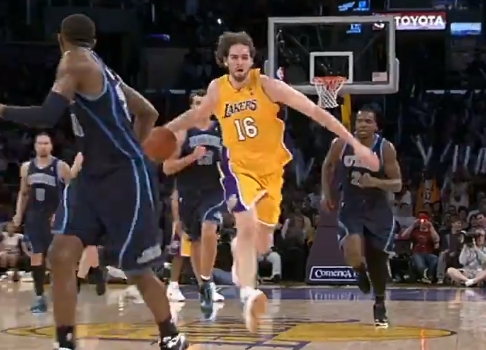 2010年11月8日 湖人121-96开拓者 出战33分钟 13中9&罚球2中2 20分14板10助3断0失误